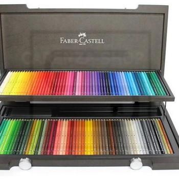 مداد رنگی پلی کروم جعبه چوبی دو طبقه 120 رنگ فابرکاستل